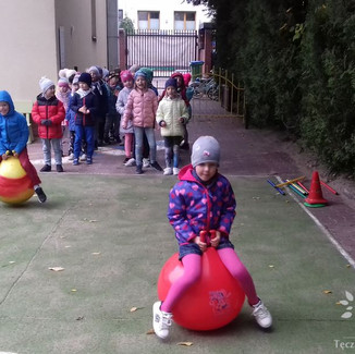 W ramach zabaw w ogrodzie zorganizowaliśmy zawody sportowe. Skoki, biegi i zabawy równoważne były doskonałym podsumowaniem tematu. Pomimo jesiennej aury, atmosfera była gorąca ;)
